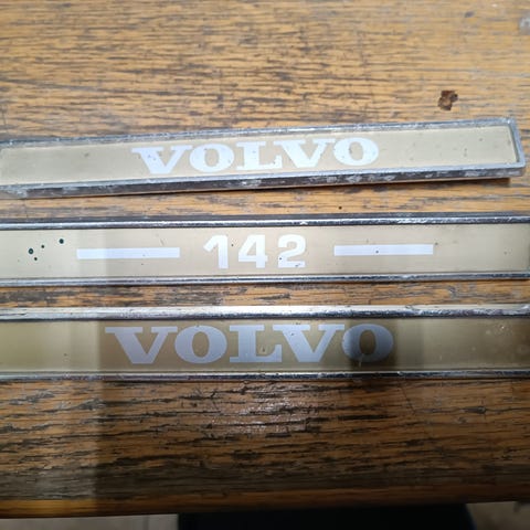 Volvon vanha merkki kiinnikkeet ehjät. Postitus varmimmin ehjänä s pakettina 8,90 hintaan.