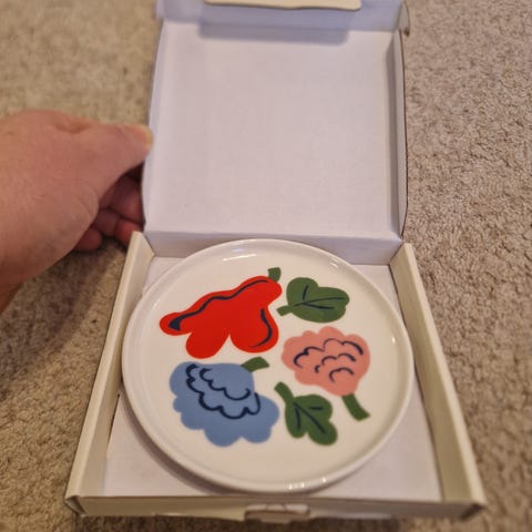 Suloinen uusi pieni vaaleansininen Marimekko Fields of Flowers limited edition Kukasta Kukkaan shape lautanen.