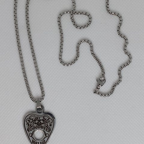 Sigil of Lucifer kaulakoru. Jäänyt kokonaan käyttämättä. Riipuksen koko 3,7cm x 3cm ja ketjun pituus 55cm. Materiaali hopean väristä metallia.