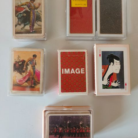 Pelikortit ostettu Espanjasta ja Kiinasta. Minikoko Espanja 1970-luku ja normaalikoko Kiina 1980-luku. Hinta yht. 5 euroa/2 kpl