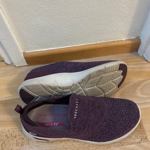 Melko hyväkuntoiset Skechers-tennarit. Väri musta-ruusukulta.