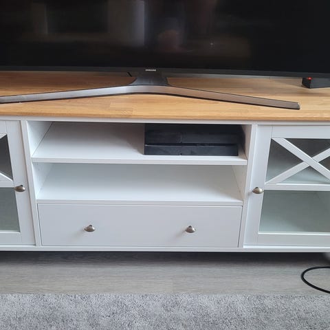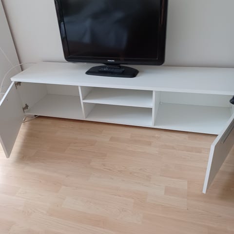 Maskun valkoinen tv-taso. Ollut käytössä reilun vuoden. Erittäin siisti.