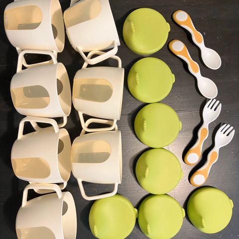 Vauvan ja taaperon ruokailuun silikoninen ruokailusetti. Ruokalappu Jollein, muki, lautanen ja kulho donebydeer. Hyväkuntoiset ja siistit. Myydään settinä. Nouto Turun keskustasta.