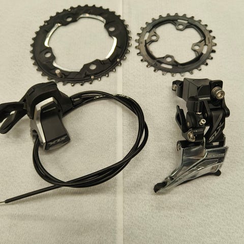 MicroShift 3 :n eturattaisen tangonpäävaihtaja+vaijeri 20€ ja eturatas 50T BCD 110 20€ Uusia.Sekä
