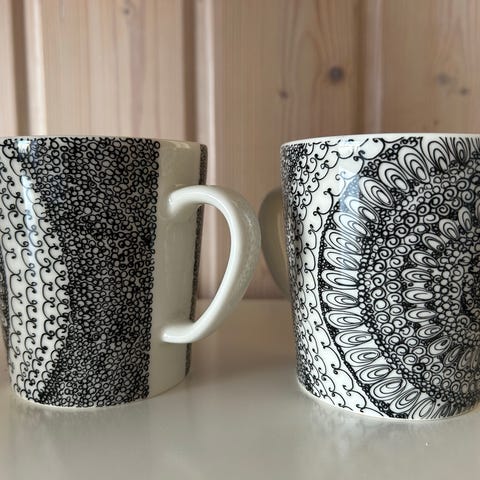 Hyväkuntoiset, hyvin vähän käytetyt kahvimukit.