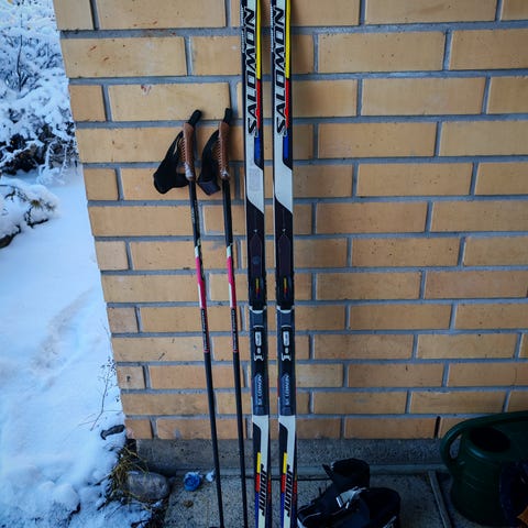 Myydään hyväkuntoiset Salomon luistelusukset, pituus 151 cm, Sns-siteellä. Salomon sauvat pituus 125 cm ja Salomon monot koko 36.