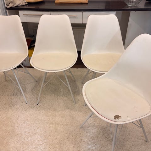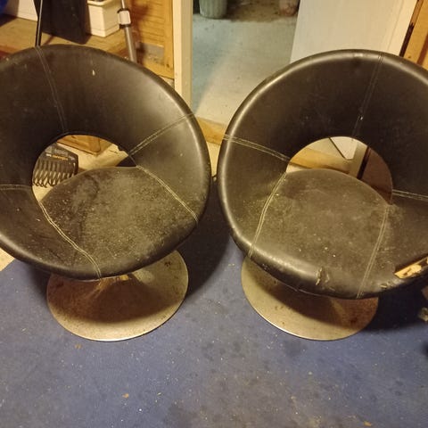 Kolme Jotexin tuolia josta verkkopunos hajonnut, joku kunnostustaitoinen -intoinen saa hakea ilmaiseksi Kangasalan keskustasta.