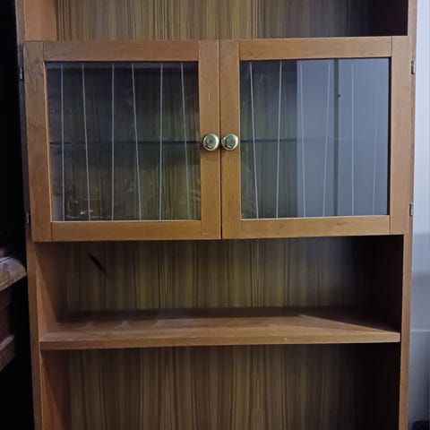 Antiikkinen sohvakalusto ja vitriinikaappi puuta