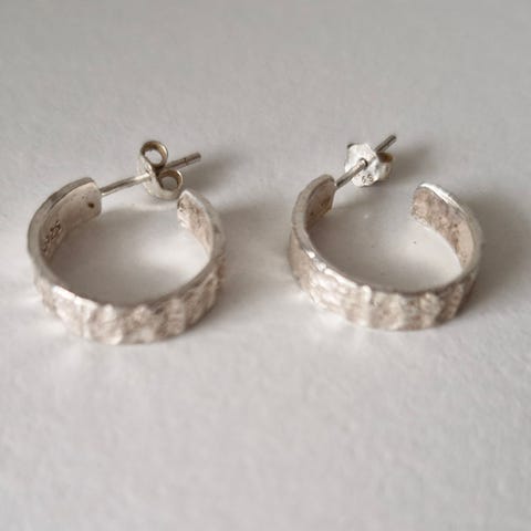 Uudet korvarenkaat. Vankat. Ei mitään kourua sisäpuolella. Sileä sisäpintakin (kuin sormuksessa). Hopean merkki on.