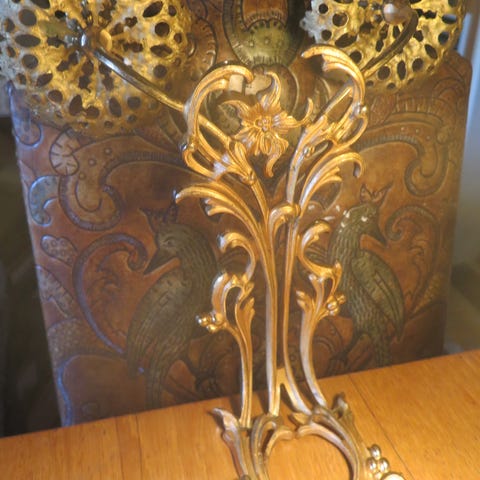 Tyylikkäät, viimeistellyt lampetit, joissa tukeva kynttiläpesä. Korkeus n. 34 cm, leveys leveimmältä kohdaltaan n. 10 cm, syvyys kynttiläpidikkeen kohdalta n. 10 cm. Ladukasta työtä, materiaali ilmeisesti tinaa. Parin hinta 90 e.
