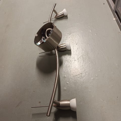 Kaksi käyttämätöntä kattovalaisinta. Materiaali kangas.