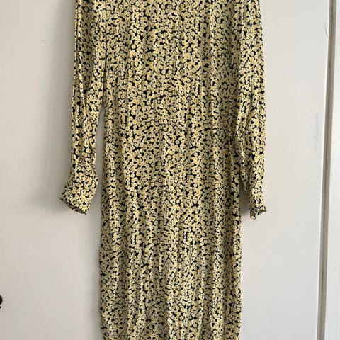 Musta paita sininisellä kukkaprintillä. Edessä kangasnapit. Materiaali 51% ecoveroviskoosia ja 49% viskoosia. Pituus 60 cm ja kai-60 cm.l