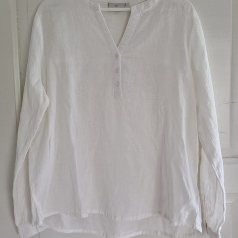 Naisten uusi valkoinen Kaffe pusero, joka on 95% polyesteria ja 5% elastaania. Hyvin laskeutuva kangas ja alla valkoinen vuorikangas. Koko M. Kevyt ilmava kangas kesän hellepäiville.