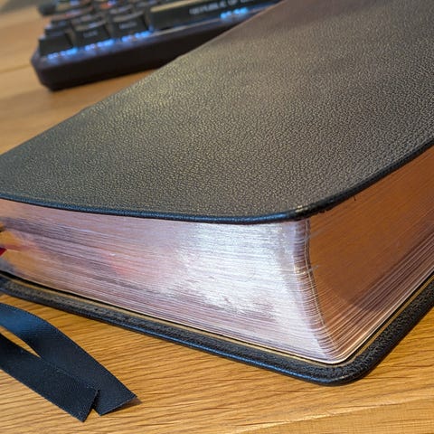 Siitä uudenveroinen huippu Raamattu. Yhteen sivuun tehty värimerkinnät (kuvassa), mutta muuten täysin uudenveroinen. NASB -käännös.