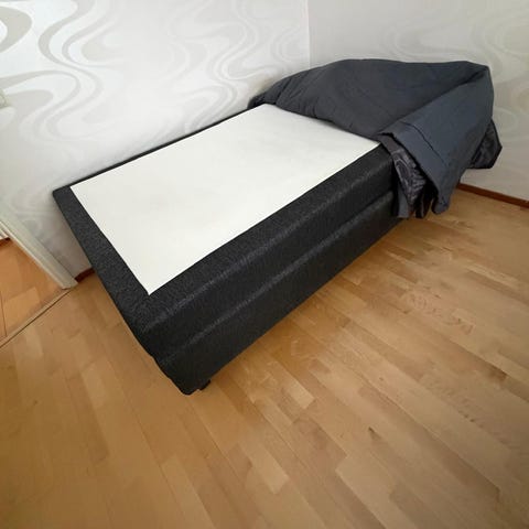 Sängynrunko ja joustinpatja sekä patja. Asialliset.