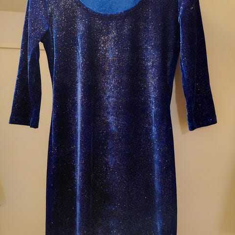 Forever 21 juhlamekko naisille. Koko S. Mekko on sininen ja valmistettu polyesteristä. Malli on pitkä ja suoraviivainen, vyötäröllä on kuminauharypytys. Päällikangas on kevyesti läpikuultava ja alla on erillinen vuorikangas. Vyötärölle mahdollisuus laittaa nauhaa. Pituus noin 125 cm ylhäältä alas (ei olkapäältä vaan yläreunasta. Ihan ylhäältä ilman venytystä 34 cm, rinnan kohdalta 47 cm.
