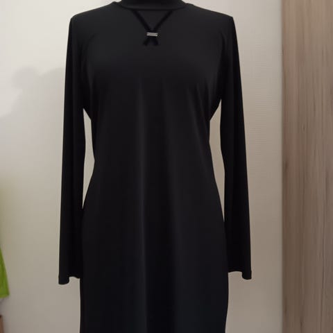 Hyväkuntoinen, puhdas ja ehjä DKNY pikku musta mekko, koko UK 10 eli vastaa kokoa 38 ja 40. Joustavaa kangasta, joten erittäin mukava päällä. Etutaskut, vetoketju selässä, kiinteä aluskangas. Kangas haalistunut aavistuksen uudesta, huomioitu hinnassa. Puuvillaa 71 %.