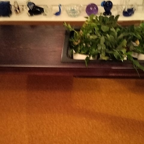 Sivupöytä/kukkapöytä. Ollut parvekkeella ja kosteus päässyt hieman tummentamaan pöydän alatasoa. Nouto yläkaupungilta.