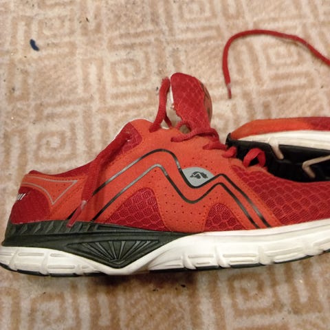 Karhu lenkkarit, koko 40. Väritys musta ja violetti, sivuilla vaaleat logoraidat ja vihreitä yksityiskohtia. Päällinen näyttää olevan tekstiiliä ja mokkapintaisia vahvikkeita. Nauhakiinnitys. Pohjassa pyöreäkuvioinen kumipohja, joka sopii arkikäyttöön ja kevyeen liikuntaan.