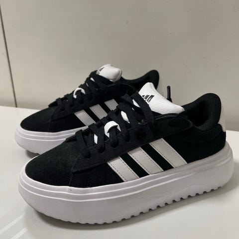Adidas tennarit, koko 37 1/3 .Väriltään valkoiset, joissa mustat sivuraidat ja valkoiset nauhat. Matalavartinen malli, kumipohja ja kangaspäällinen. Sopivat arkikäyttöön ja vapaa-aikaan.