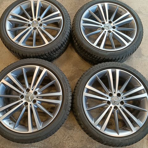Eli uusikorisen C257 CLS vanteet. Käytännössä uutta vastaavat. Ajettu saksasta suomeen. Mersun rengaspainetunnistimet mukana. Etuset 8x19, takaset 9x19. Kaikissa mersulle vähän normaalia pienenpi ET, 33. Sopii muihinkin mersuihin ja ET:n takia tulee kivasti lähemmäs kaarta ilman kikkailuja.