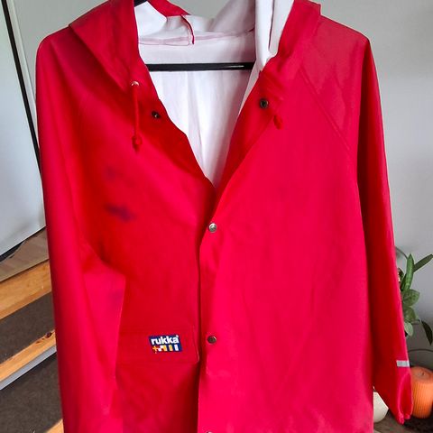 Käyttämätön Rukan punainen sadetakki. Vain nouto.