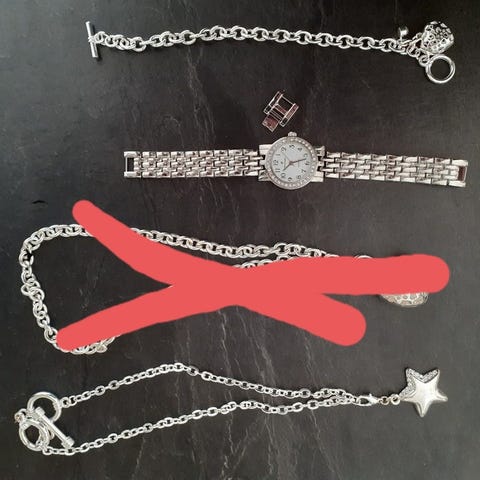 Erilaisia koruja, kelloja ym.