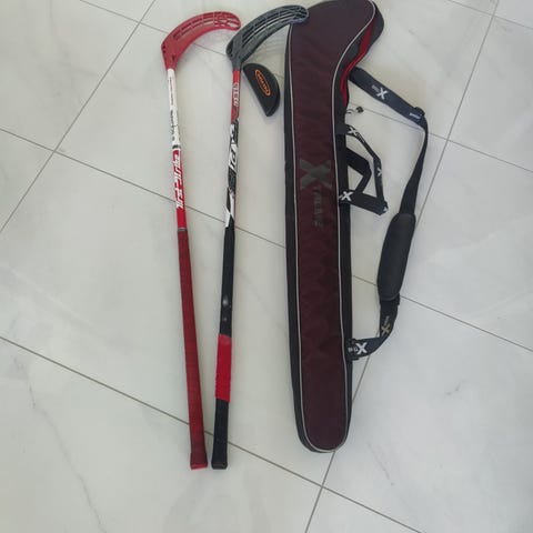 Myytävänä kaksi vanhaa kohtalaisessa kunnossa olevaa salibandymailaa. Oikealla Unihoc Flex 32 varten pituus 75cm ja vasemmalla Canadien Flex 34 varten pituus 72cm. Molemmat taipuisia lasten mailoja, sopivat n.130-145cm pelaajalle. 3€/maila