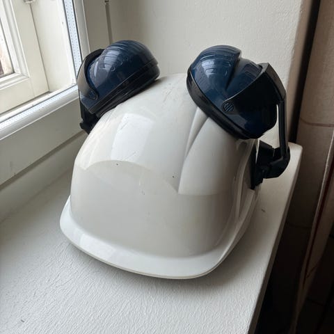 Halvalla nurkista pois kypärä. Kypärässä suojalasit