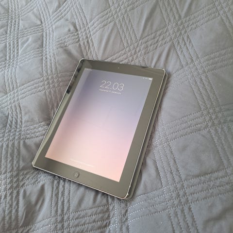 Ulkoisesti IPad on lähes virheetön, näytössä ei ole naarmuja eikä ulkokuoressa ole käytön jälkiä. Panssarilasi ja suojakuoret ovat olleet käytössä uudesta asti. Akku semi ok, tosin ei reilun 5 vuoden jälkeen voi muuta olettaa. Uusinta päivitystä ei enää pysty lataamaan.
