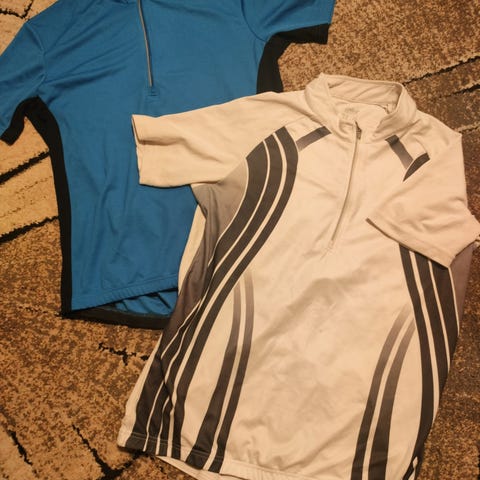 Kokoa L olevat pyöräilypaidat 3 kpl ja pyöräilyhousut. Kaikissa etuvetoketju ja takana taskut pientavaroille. Materiaali kevyttä ja hengittävää teknistä kangasta, joka siirtää kosteutta pois iholta. Sopivat maantie- ja kuntopyöräilyyn.