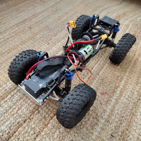 2. You need shock absorbers. 80 mm should be a good one for this rig. Don't go higher than 80. Otherwise proportions do not seem good. And the steering servo gets too high and I feel that weakens the servo link.