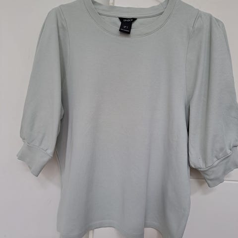 Kaunis tummanvihreä tai petroolin värinen juhlapusero. 3/4-pituiset hihat ja kevyt, laskeutuva materiaali, todennäköisesti polyesteri. Laput puuttuu.