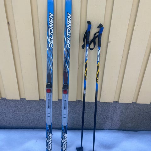 Sukset 125 ja Exel sauvat 105cm seuraavalle lapselle hiihdon harjoitteluun. Käytön jälkiä jo on ja teippijälkiä nimikoinneista, mutta hyvät vielä seuraavalle lapselle harjoitteluun.