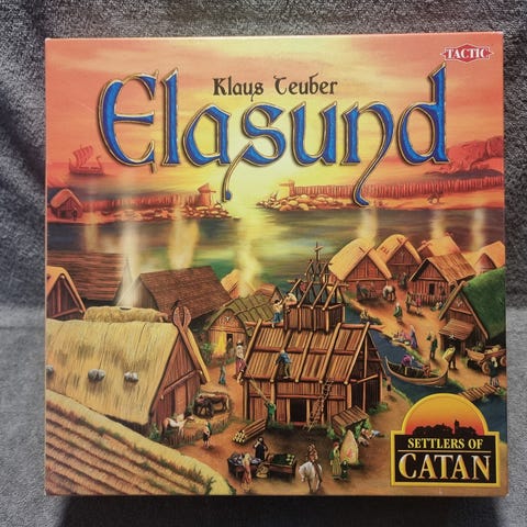 Elasund lautapeli. Settlers of Catan -maailmaan sijoittuva strategiapeli, jossa pelaajat rakentavat ja kehittävät Elasundin kaupunkia. Peli sisältää pelilaudat, pelisäännöt suomeksi, puisia pelinappuloita, kortteja ja pahvisia pelimerkkejä. Soveltuu useammalle pelaajalle ja tarjoaa vaihtelevia pelitilanteita kaupungin rakentamisesta ja resurssien hallinnasta kiinnostuneille.