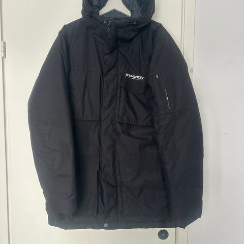 Pitämätön Everest -merkkinen untuvatakki, jossa kiinteä huppu ja siinä irrotettava turkisreunus. Väri on tummanruskea (näyttää kuvassa harmaammalta) ja koko n. 52. Postitus sisältyy hintaan.