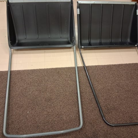 Kaksi lumikolaa kolausasennossa tangon korkeus 56cm, sininen ja pinkki.