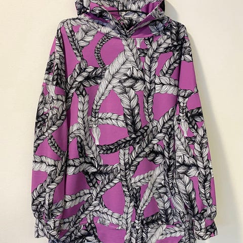 Vimma violetti lettihuppari. Kokoa en löytänyt: mitat pituus: n.71cm, kainalo-kainalo n65cm. Siistikuntoinen. Eläintalous ja pesty hajusteellisilla.
