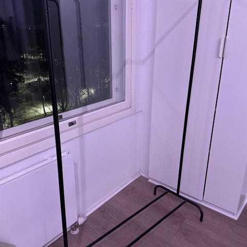 Etolasta ostettu valkoinen vaaterekki. Leveys 119cm, korkeus 152cm.