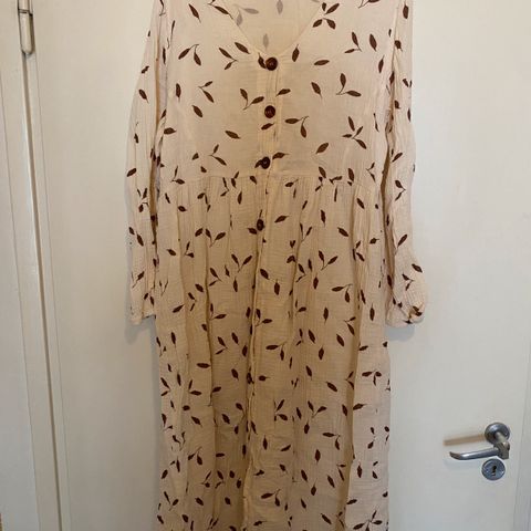 Kaikon button dress mustana. Ilmavaa puuvillamusliinia. Uudesta varmasti haalistunut, mutta mielestäni vielä hyvin musta, kuvat eivät imartele. Ehjä, ei suurempia sanomisia. Väljä istuvuus, mutta itselle hartioista kireä, joten ostin isommassa koossa.
