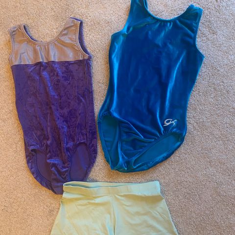 Käsintehty kaunis voimistelupuku. Käytetty yksi kausi eli noin 6 kertaa. Venyvää materiaalia.