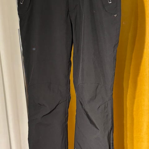 Uudenveroiset mustat lasketteluhousut, lumilukot. Softsell. Vetoketjutaskut. Vyötäröllä säätömahdollisuus. Lahkeissa vetoketjut.