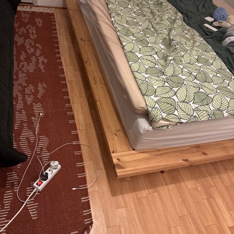Sängyn runko on leveydeltään 168 cm ja se sopii 140 cm leveälle patjalle. Jalkojen korkeus 19 cm. Pituus 200cm. Pientä käytön jälkeä, mutta yleiskunto on hyvä. Runko on kevyt, saa helposti kahdestaan kannettua. Vain nouto! Tarjouksia otetaan vastaan!