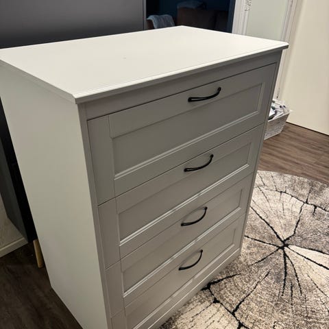 Myydään siisti valkoinen IKEA-lipasto, jossa kolme isoa laatikkoa. Pieniä käytön jälkiä löytyy, kuvissa näkyy.