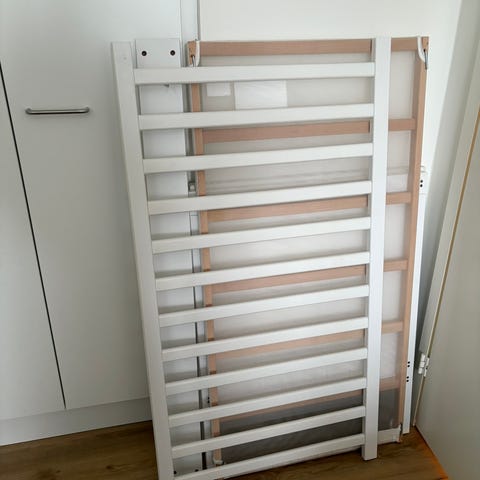 Hyvässä kunnossa oleva Ikean sundvik pinnasänky krummelur patjalla. Sängyn pohjan saa kahteen eri korkeuteen ja toisen laidan saa pois. Sängyn molemmissa päädyissä hieman kulumaa. Mukaan saa myös hyvässä kunnossa olevan Ikean krummelur patjan.