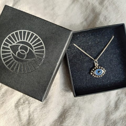 The Label is Juicy -merkin hopeinen (925) riipus, jossa nahkanyöri. Voi käyttää ranteessa tai choker-kaulakoruna. Riipuksen silmän väri vaalea violetti. Myydään alkuperäisessä rasiassaan, hyvin vähän käytetty.