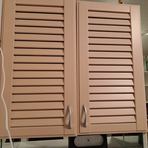 Annetaan ehjät oletettavasti n.35v vanhat yläkaapit (2+1 kaappia). Olleet suihkutilassa liinavaatekaappeina.