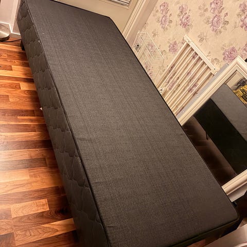 120 cm leveä sänky, jossa vaalea runko ja puiset jalat. Mukana vaalea joustinpatja, joka sopii rungon päälle. Sänky soveltuu esimerkiksi makuuhuoneeseen tai vierashuoneeseen. Kuvissa näkyvät päiväpeitteet 2 kpl ja helmalakanan saa hslutessaan ksupan päälke.