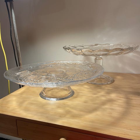 Lasinen kakkuvati jalalla kirkas