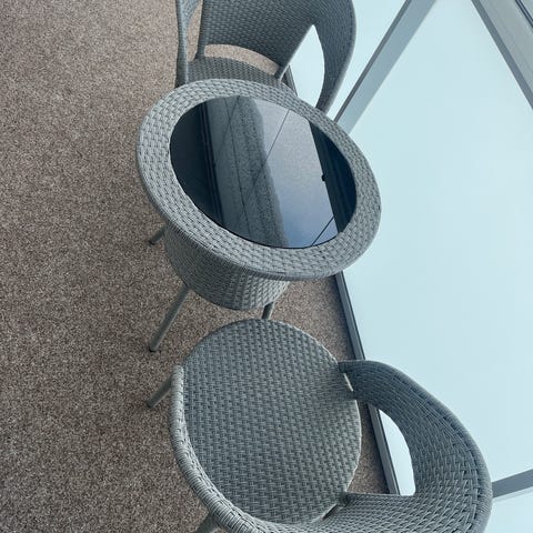 Laadukas terassi/parvekepöytä ja kaksi tuolia. Hyvässä kunnossa.
